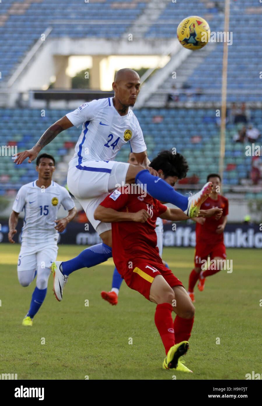 Yangon Myanmar 23rd Nov 2016 Ronny Harun Top Of Malaysia Vies With Nguyen Cong Phuong Of Vietnam During The Aff Suzuki Cup Group B Soccer Match Between Malaysia And Vietnam At Thuwanna
